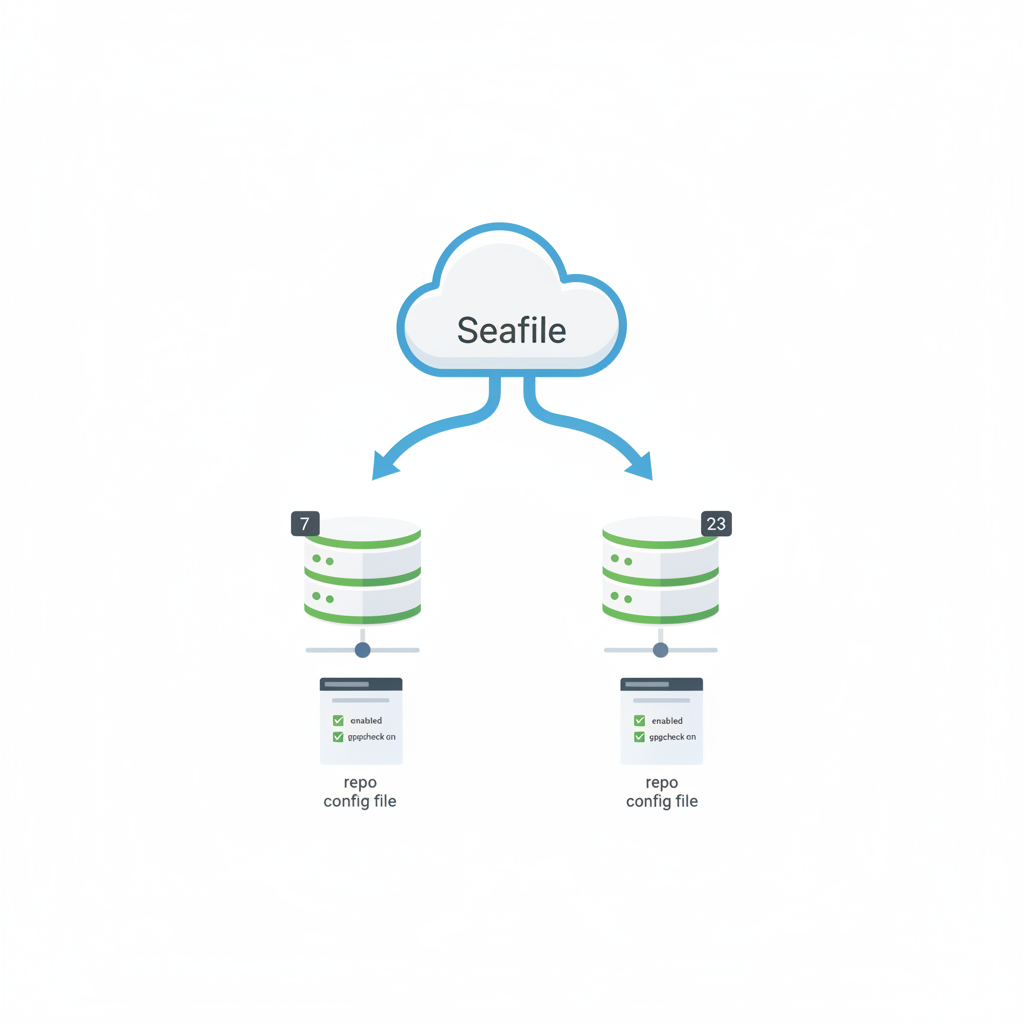 $> vi /etc/yum.repo.d/seafile.repo [pkerling-seafile] name=Copr repo for seafile owned by pkerling baseurl=https://copr-be.cloud.fedoraproject.org/results/pkerling/seafile/fedora-$releasever-$basearch/ skip_if_unavailable=True gpgcheck=1 gpgkey=https://copr-be.cloud.fedoraproject.org/results/pkerling/seafile/pubkey.gpg enabled=1 enabled_metadata=1